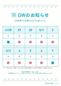 GW休業 / 4月29日(水)~5月6日(水)まで